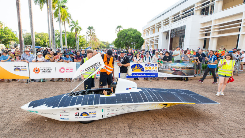 For the third time in a row, Team Sonnenwagen took on the challenge of participating in the world  toughest solar car race across the Australian outback – the Bridgestone World Solar Challenge. From October 22 to 29, the students from RWTH Aachen University and Aachen University of Applied Sciences did well with their self-developed vehicle "Covestro Adelie" Despite challenging climatic conditions, they were able to maintain an average speed of around 80 kilometers per hour on the more than 3,000-kilometer route from Darwin to Adelaide. In a strong competitive environment, they positioned themselves among the top five cars, but in the harshness of the race, an accident finally occurred, which fortunately was mild, but forced the team to abandon the race.
